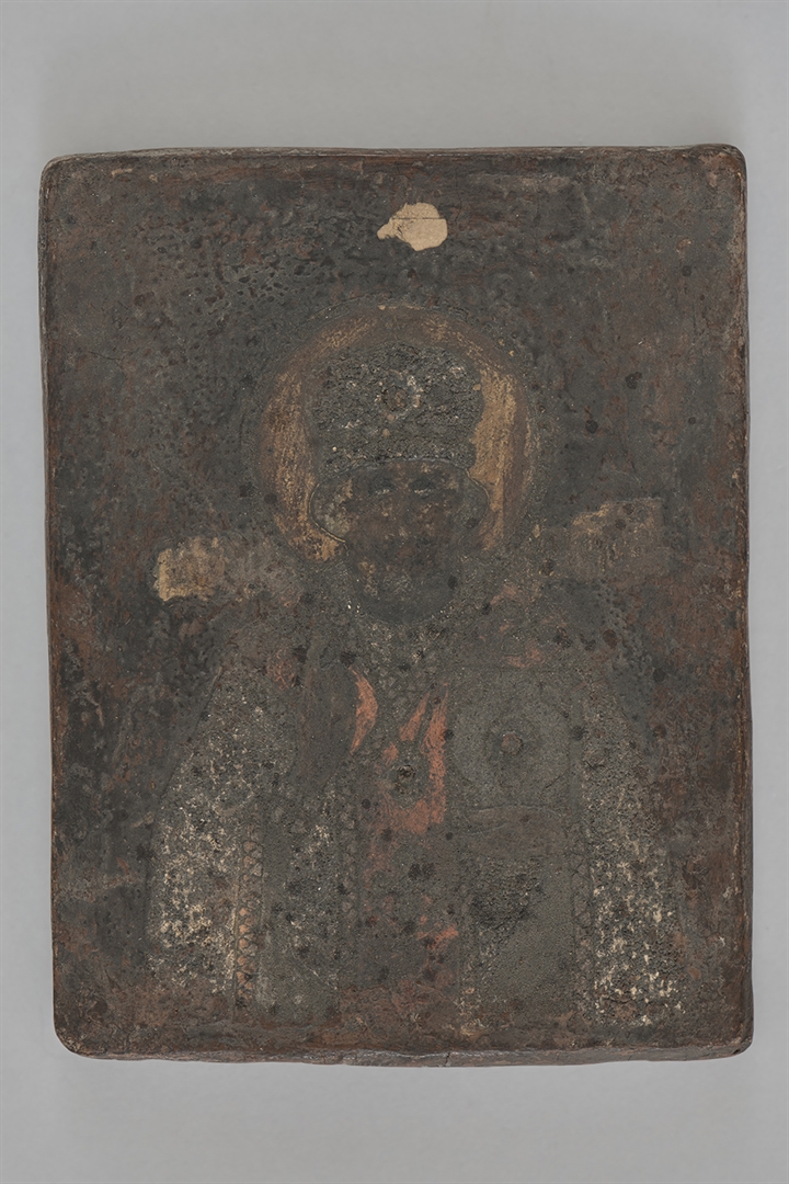 Ikona Sv. Nikole, XVII. st. ? Majstor nepoznat. Na glavi ima krunu sa krstom. Iza glave okrugla zlatna aureola sa rubom. Bogati plašt. Oko vrata privjesak. Pozadina nekad bila zlatna ima odozgo debeli sloj smeđe farbe. (Inventarna knjiga 1-3, 1. tom)