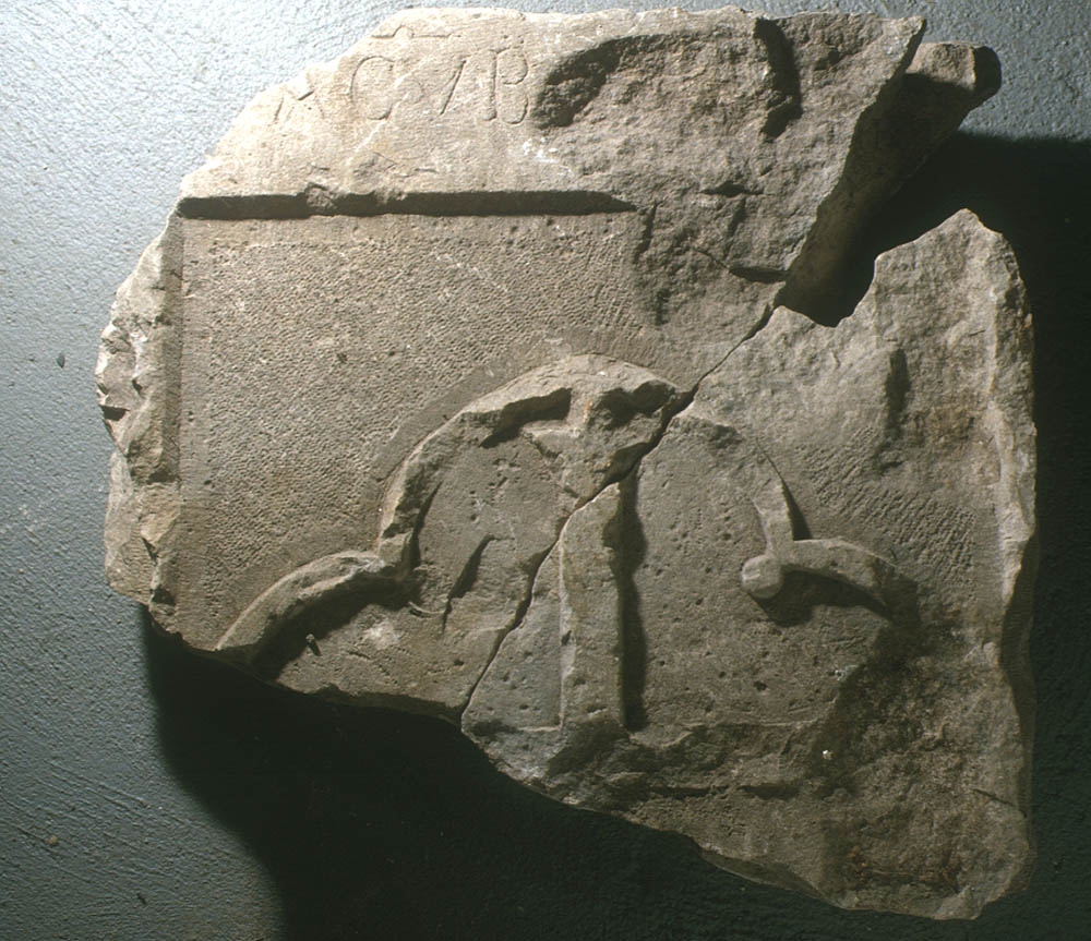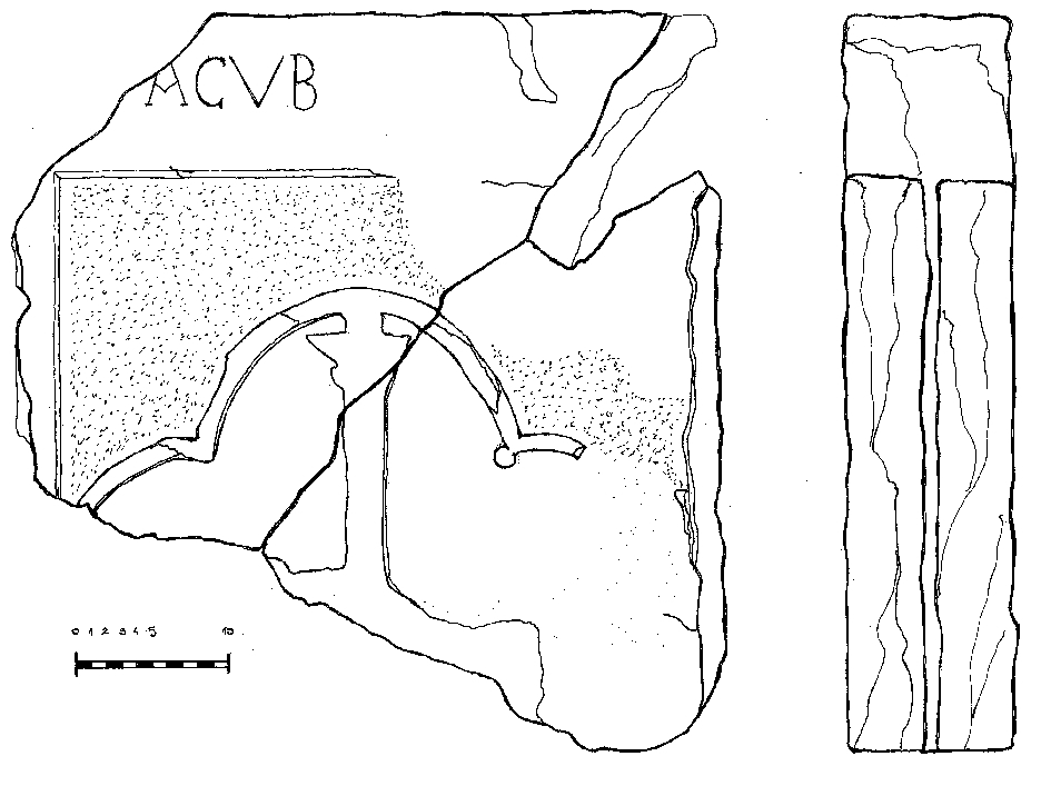 Ploča s grbom obitelji Surian, patricijske obitelji s područja Veneta. Uz gornji lijevi dio ploče sačuvan je dio natpisa: ACVB. Sačuvan je gornji dio grba izveden u plitkom reljefu unutar uokvirene površine, sa krakom križa i dijelom ovalnog obruba koji ga uokviruje. Ploča je pukla na dva djela i oštećena je na više mjesta.