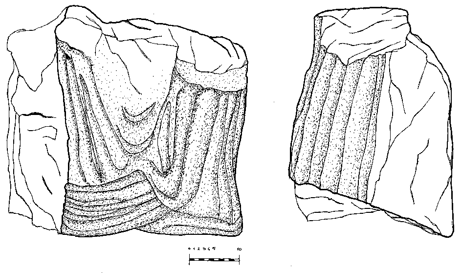 Ulomak kipa na kojem se uočava draperija. Najvjerojatnije se radi o prsima.