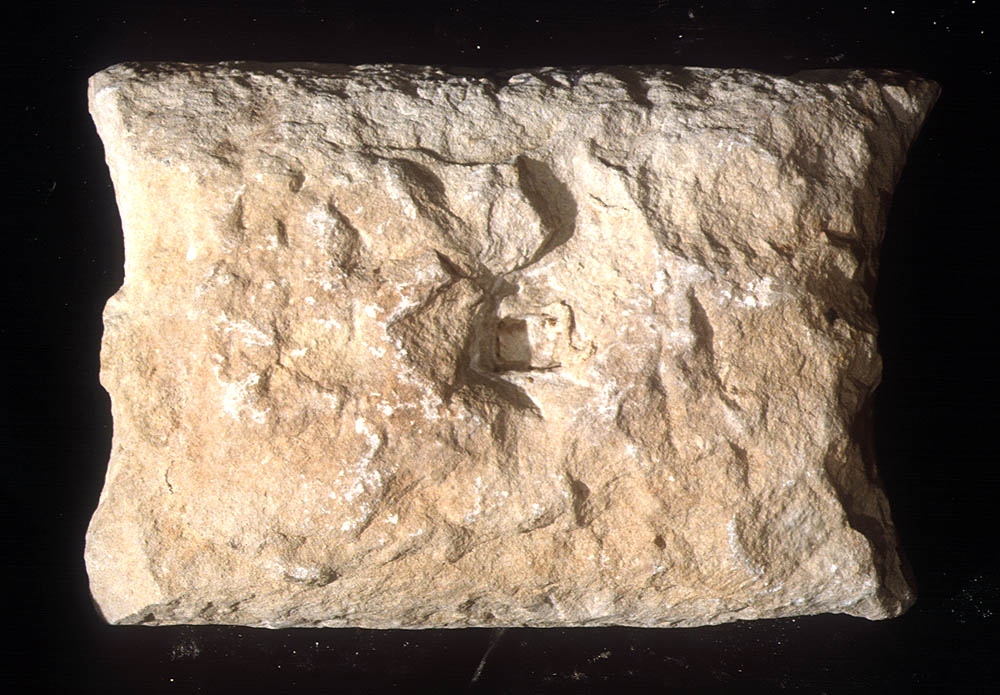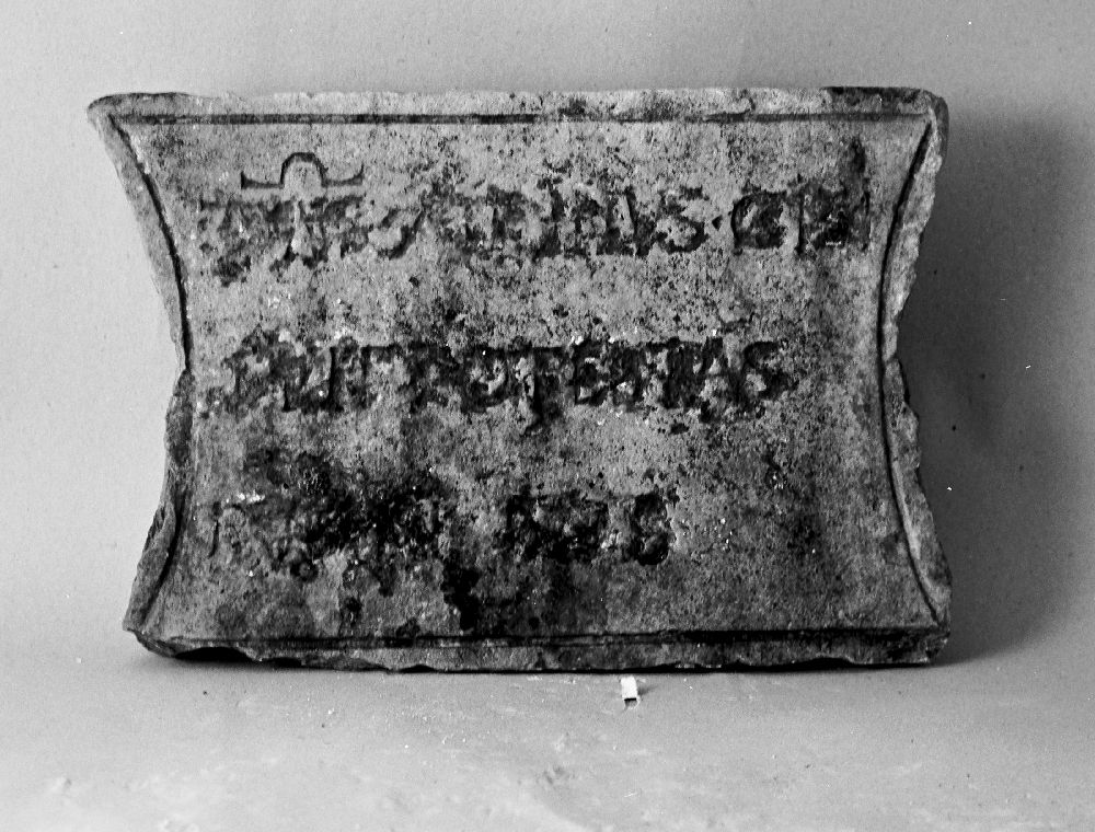 Kamena ploča uvučenih bočnih strana koja duž cijelog ruba ima isklesan plitki kanal. Na ploči su ostaci natpisa u tri reda Natpis je netko oštetio te je nečitak.