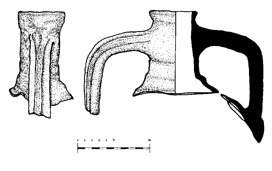 Ulomak grla amfore. Obod je blago zadebljan/prstenast i nenaglašen. Vrat je okomit/cilindričan, kratak i blago narebren. Ručke su trakaste i brazdane. Započinju ispod oboda. Jedna od ručki je sačuvana u cijelosti i završava na spoju ramena i trbuha. Keramika je tanka i porozna.
