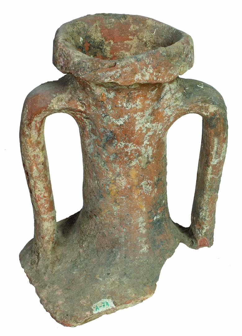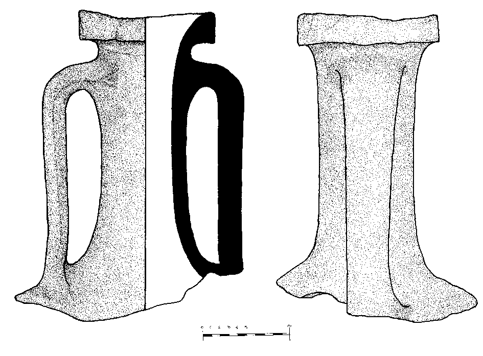 Gornji dio amfore. Obod je naglašen i trakasto izveden. Vrat je izdužen i blago konusan. Ručke su izdužene, ovalnog presjeka. Započinju ispod oboda i pod blagim kutom se spuštaju na naglašeno rame.