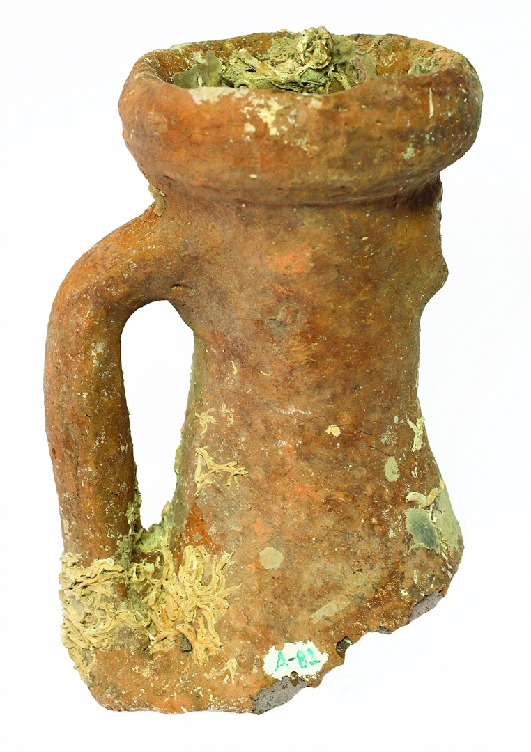 Grlo amfore. Obod je naglašen, zadeljan i zaobljen. Vrat je blago konkavan. Sačuvana ručka je masivna i ovalnog presjeka. Započinje ispod oboda i okomito se spuštaju na rame. Nedostaje druga ručka i dio vrata.
