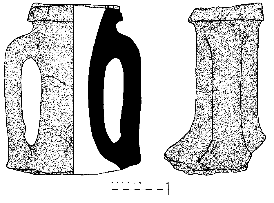 Ulomak grla amfore. Obod je blago naglašen i trakasto izveden, blago se širi prema dolje. Vrat je izdužen i cilindičan. Ručke su ovalnog presjeka, započinju ispod oboda i okomito se spuštaju na rame.