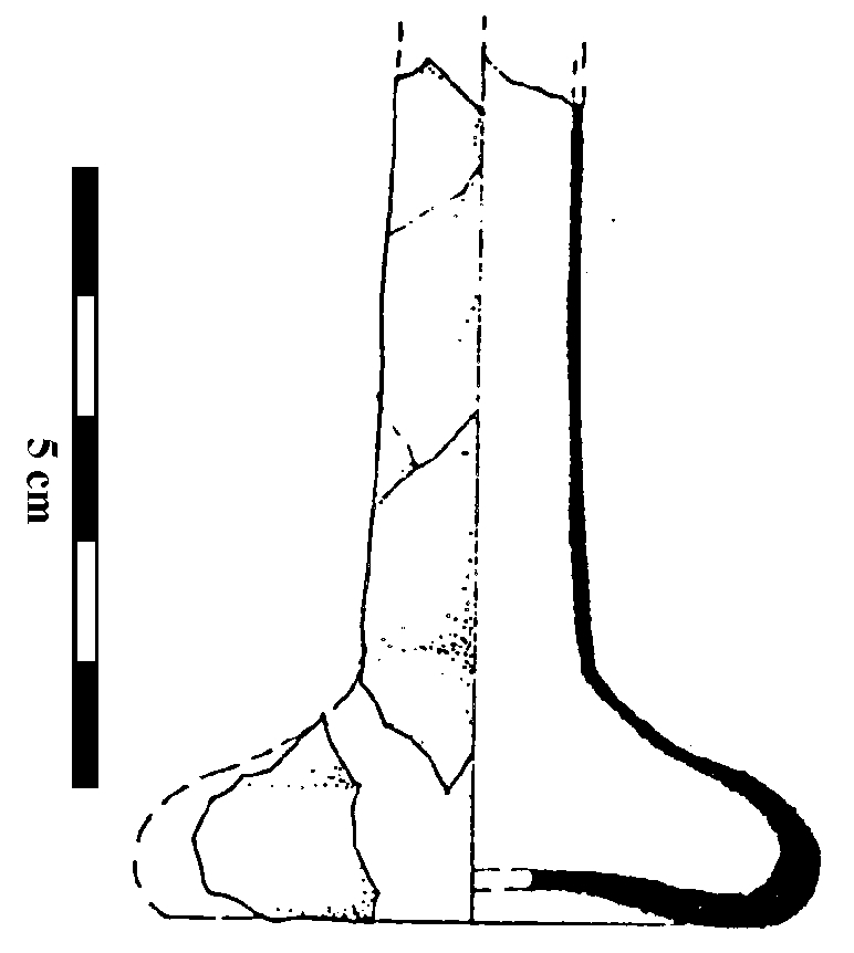 Fragmentirani stakleni balzamarij zčonoliko-konkavna tijela i visokog cilindriččog vrata. Otvor nedostaje. Dno je konkavno. Staklo je prozirno i plavkaste boje.