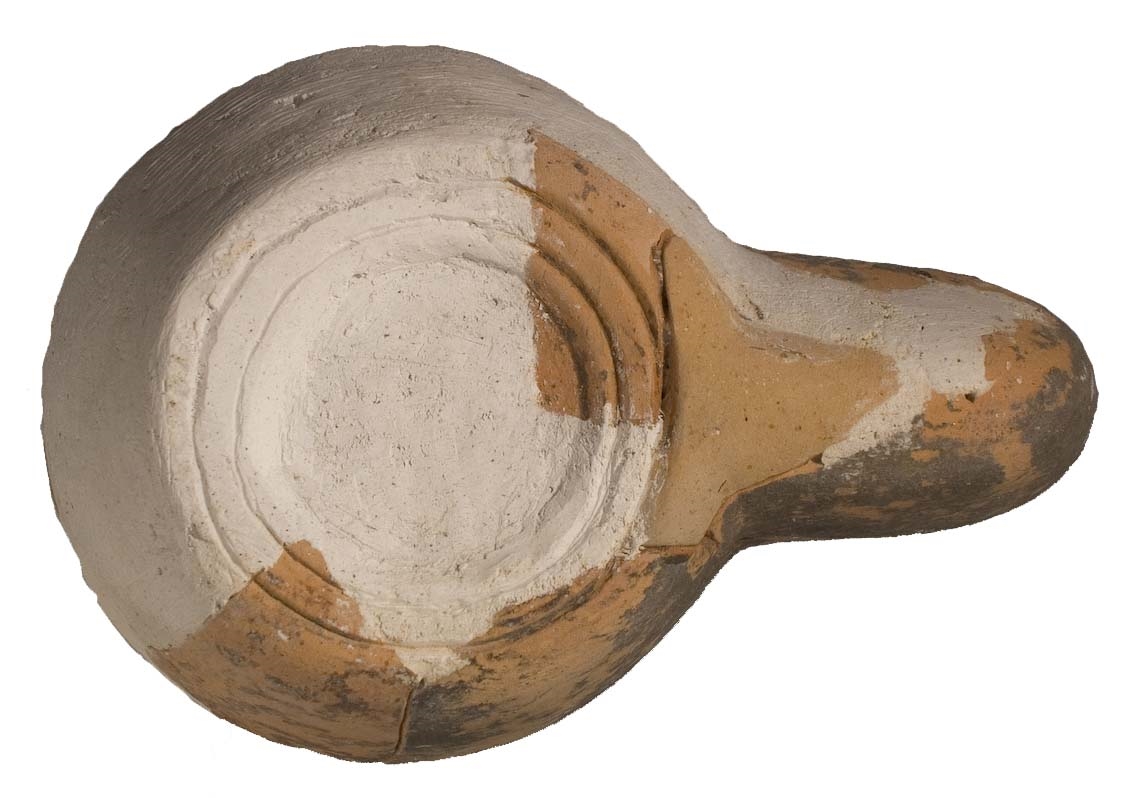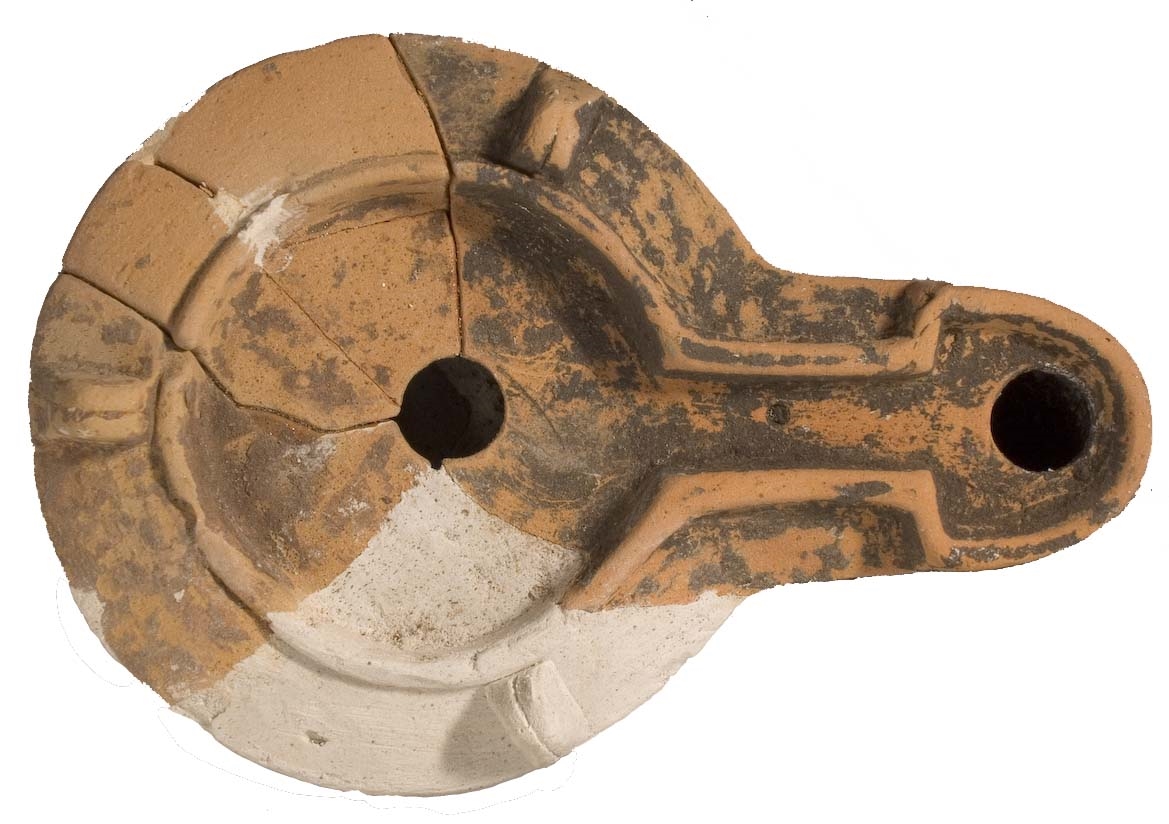 Ulomak uljanice ''firmalampe''. Na ramenu se nalaze tri stilizirane ušice. Dno je obrubljeno s dva cilindrična urezana kruga, žig nije sačuvan. Glina je crvena, fino pročišćena, pokrivena tamnom naslagom.
