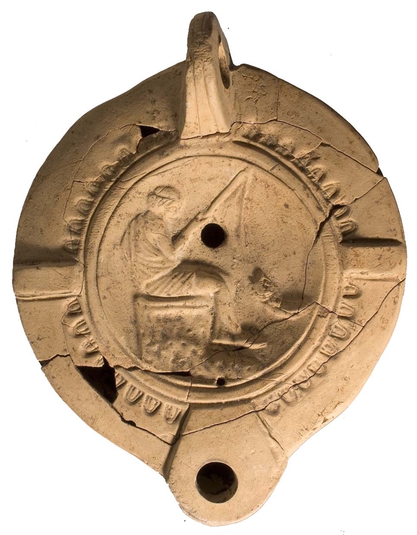 Uljanica s malim okruglim gorilo i plosnatom ručkom sa otvorom, koja je rađena u kalupu. Rame je ukrašeno ovoidnim ornamentom i dvjema stiliziranim ušicama. Na disku prikaz ribiča, starca koji sjedi na stijeni, s ulovljenom ribom na udici. Dno je obrubljeno užljebljenom kružnicom i nosi rukom upisano ime proizvođača u grčkom pismu: AGE(...)ONO(Y). Glina je žuta, fino pročišćena, lagana, premaz crvenosmeđ, pokrivena je tamnom naslagom. Dimenzije: Dužina 110 mm, Visina ručke 45 mm.