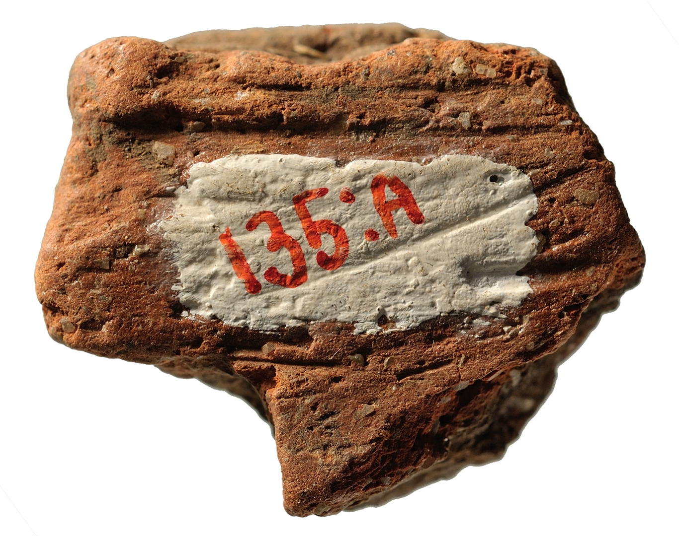 Ulomak trbuha posude koji sa vanjske strane ima ukras izveden urezanim linijama. Keramka je crvenksto smeđe boje.