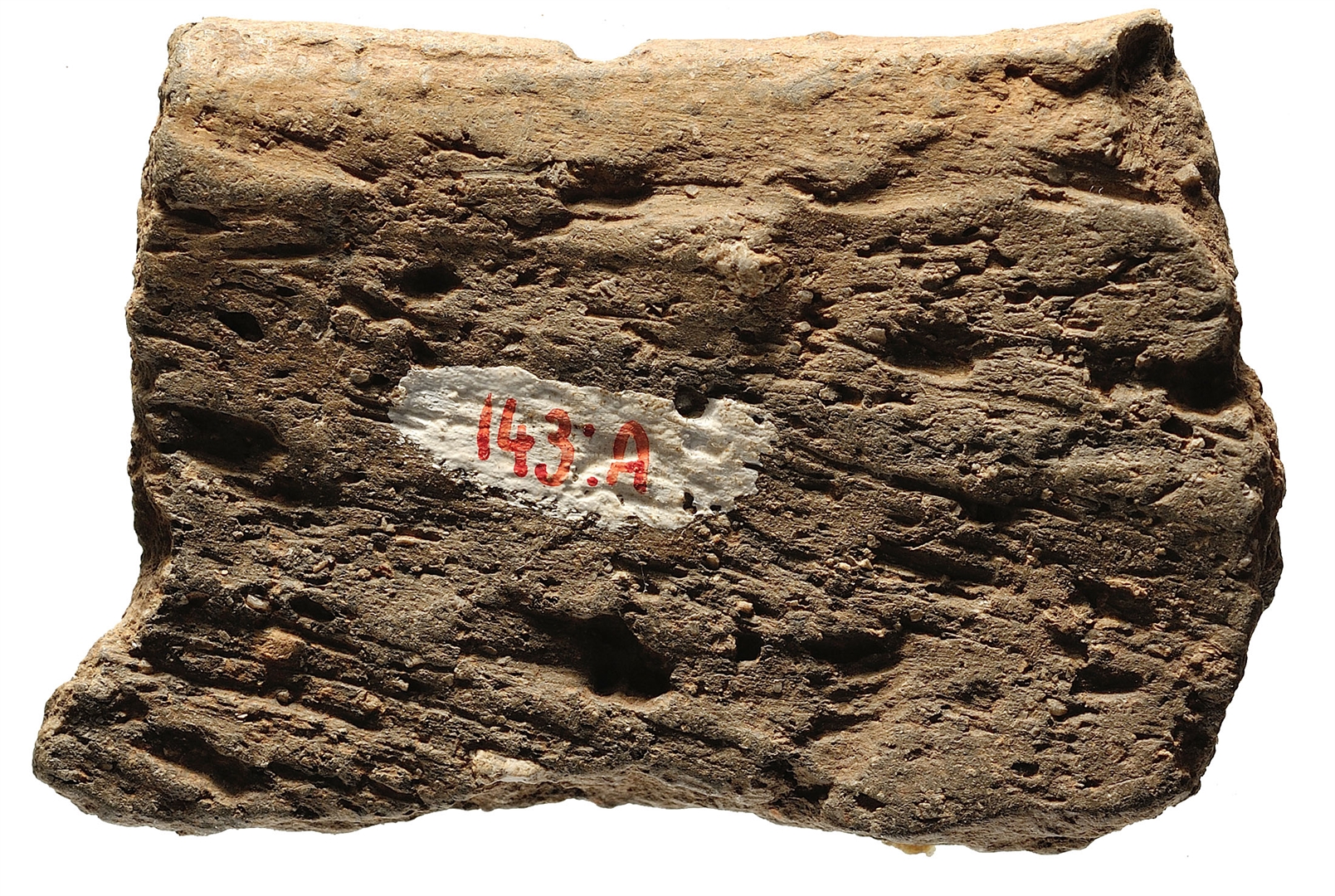 Ulomak posude sa zaobljenim obodom ispod kojeg se sa vanjske strane, odmah ispod njega, nalazi horizontalni niz okruglih uboda. Ispod toga nalazi trbuh ukrašen metličastim ukrasom.