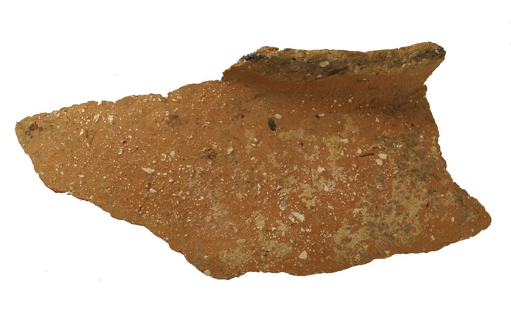 Gornji dio posude sa prema vani izbačenim ušćem ispod kojeg se nalazi kratki uvučeni vrat. Kreamika je tamnosmeđe boje i s puno primjesa kalcita.