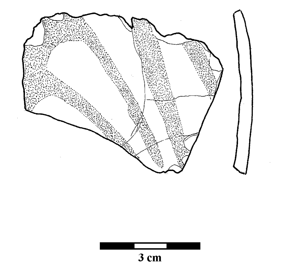 Ulomci tijela crvenofiguralnog vrča. Svijetlooker pročišćena keramika. Sačuvan prikaz stilizirane palmete.