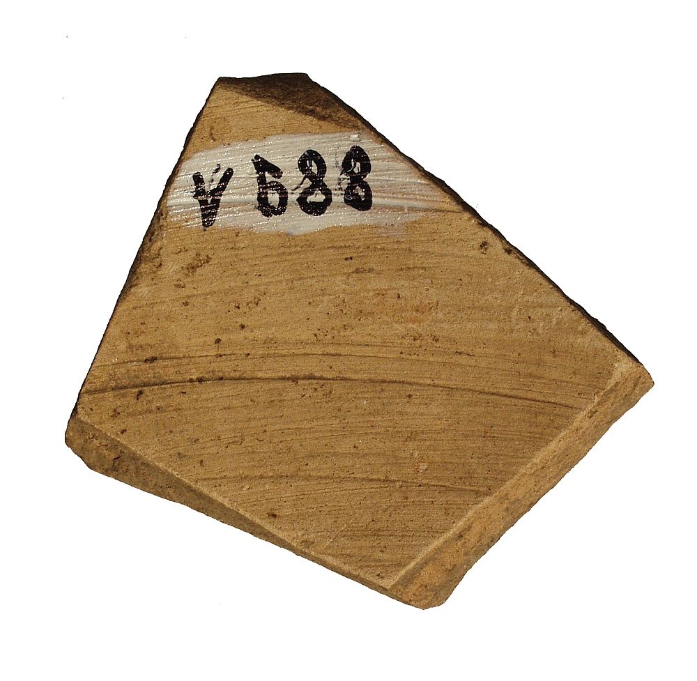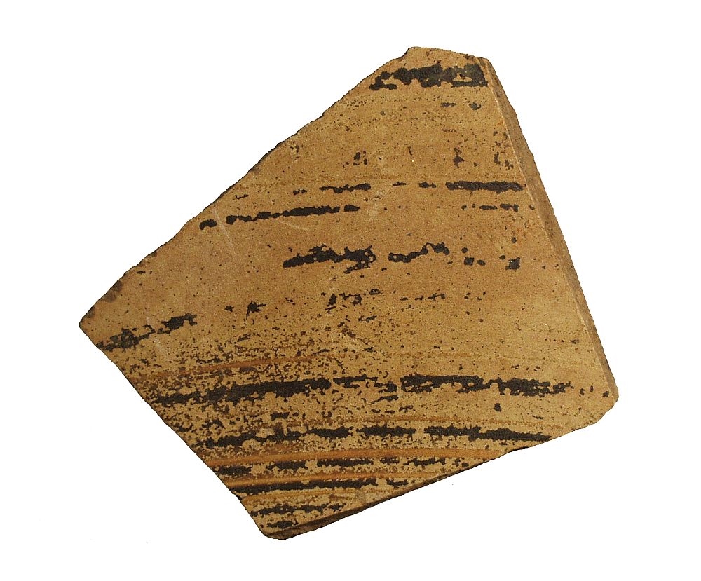 Ulomak tijela posude izvana tragovi smeđeg premaza. Svijetlosmeđa pročišćena keramika.