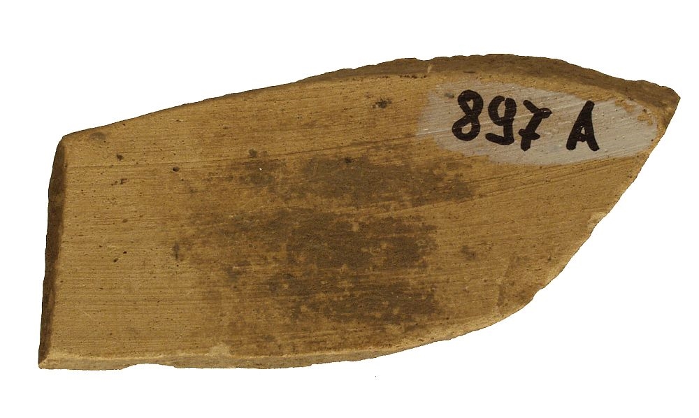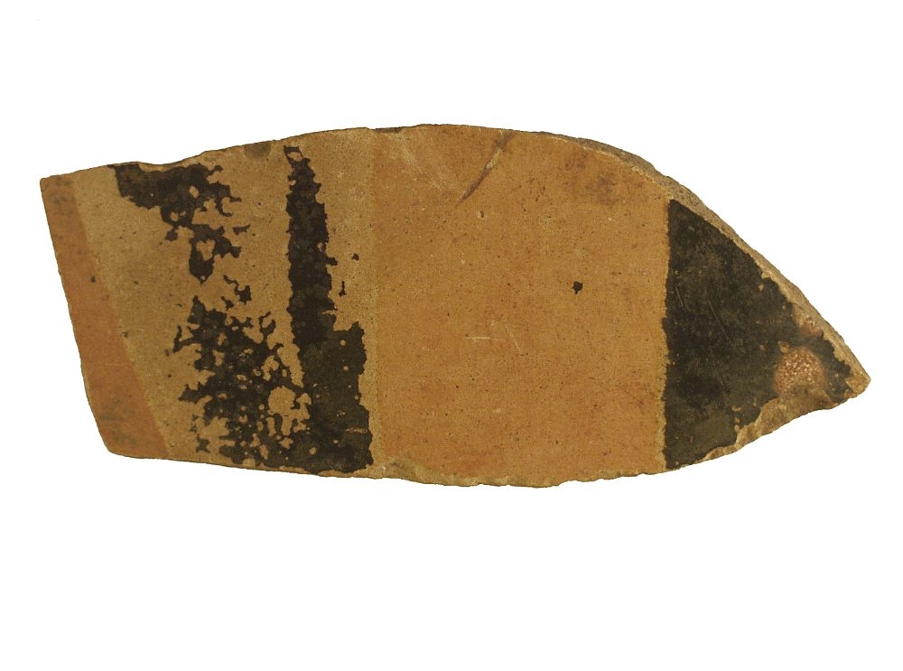 Ulomak tijela crvenofiguralne posude. Oker pročišćena keramika. Ostatak neodređenog figuralnog detalja.