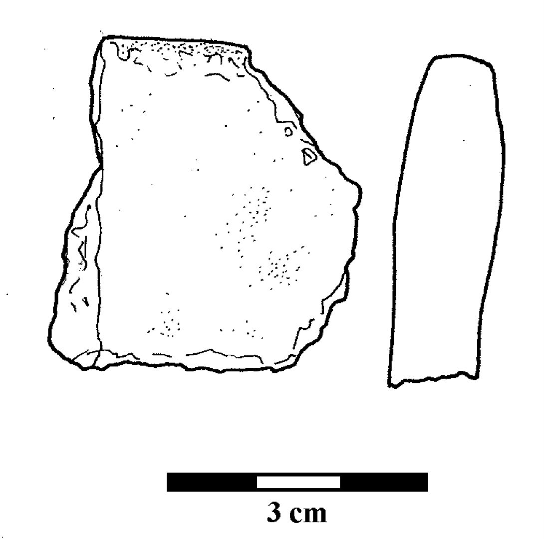 Ulomak nenaglašenog ušća posude. Keramika je sivocrne, a stijenke smeđe boje.