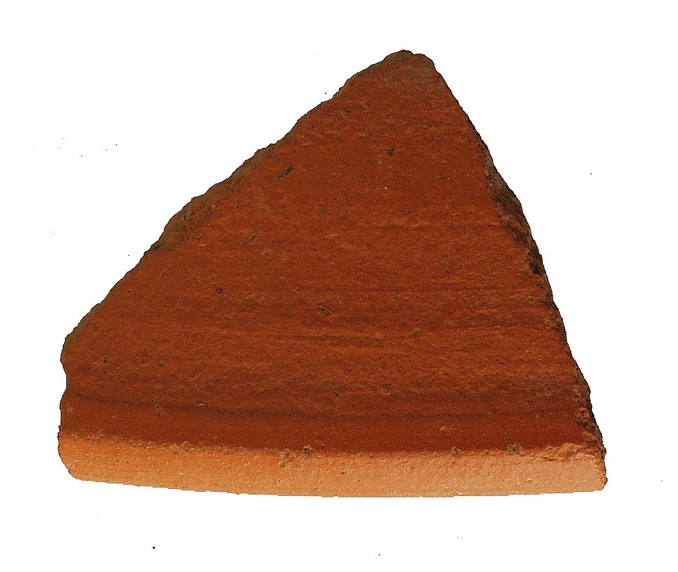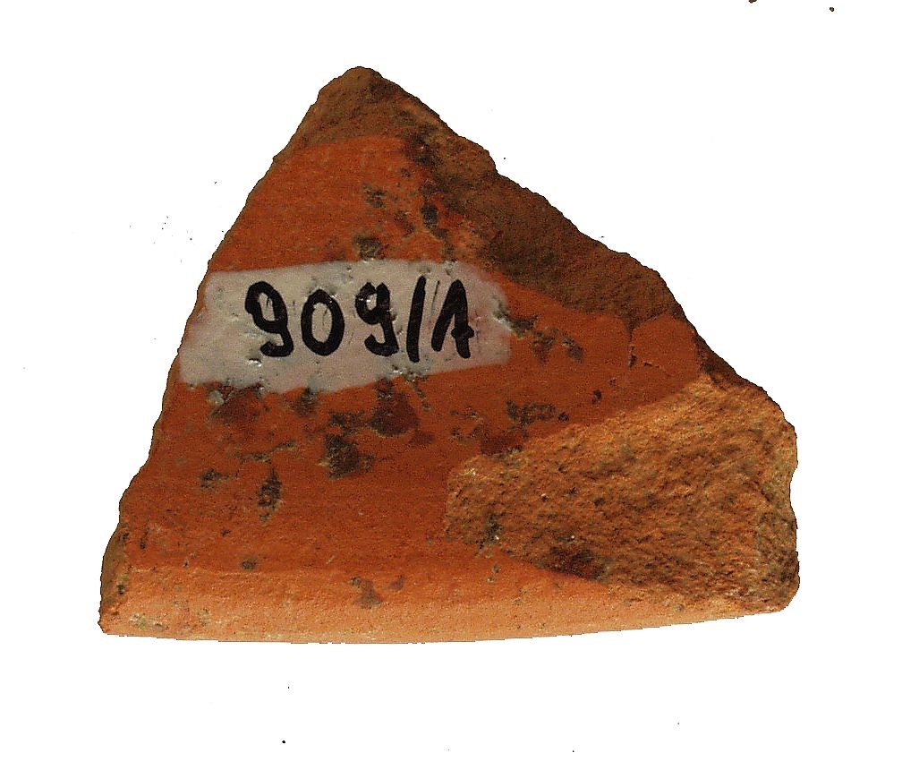 Ulomak zvonolike noge posude. Keramika je pročišćena i naranđaste boje.