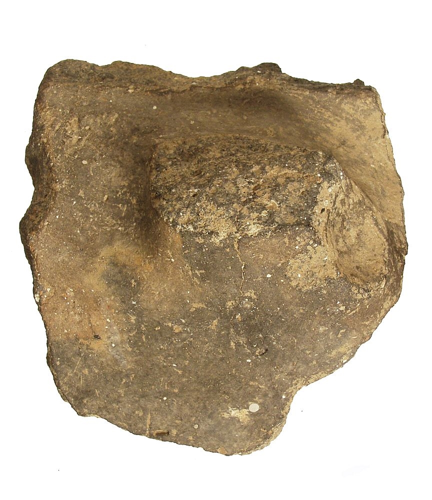 Ulomak prema vani izvijenog ušća posude na kojem se nalazi koren ručke eliptičnog presjeka, u čijem se dnu nalazi utisnut otisak prsta.