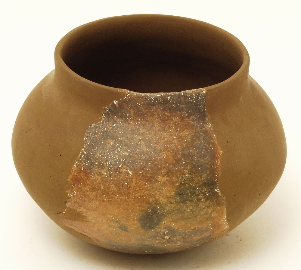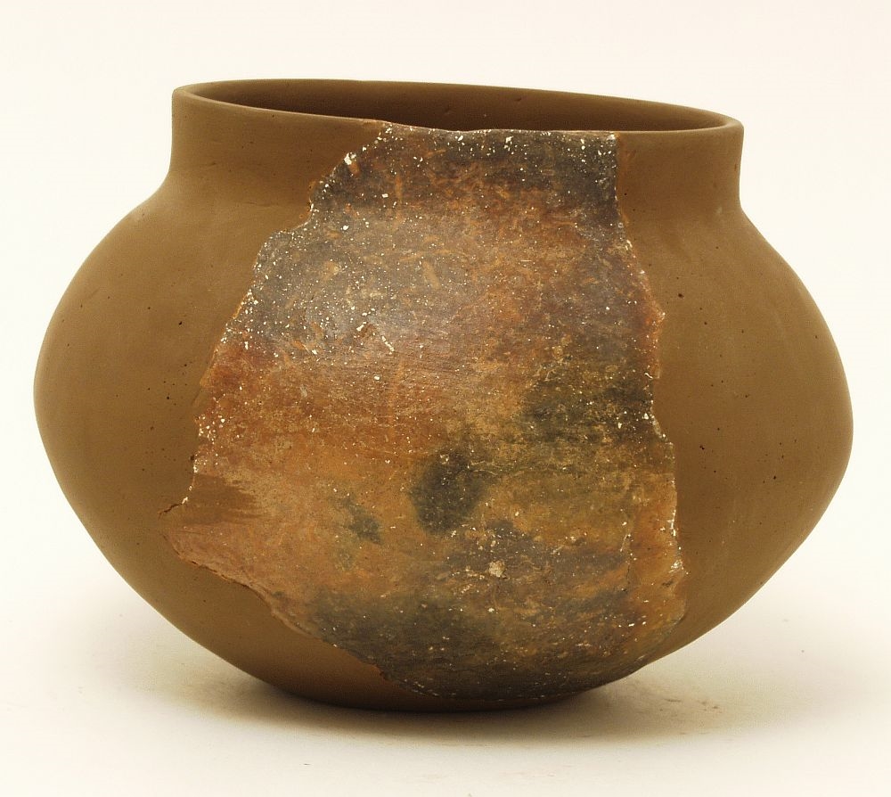 Veći ulomak posude nenaglašenog, cilindričnog ušća ispod kojeg se nalazi zaobljen trbuh koji završava ravnim dnom. Keramika je smeđe do tamnosmeđe boje sa puno primjesa kalcita.