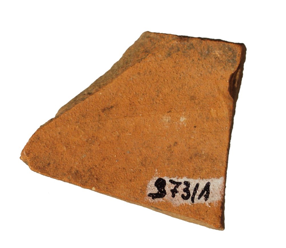 Ulomak posude izrađene na kolu. Svijetlosmeđa pročišćena keramika, ukrašena slikanom smeđom horizontalnom trakom.