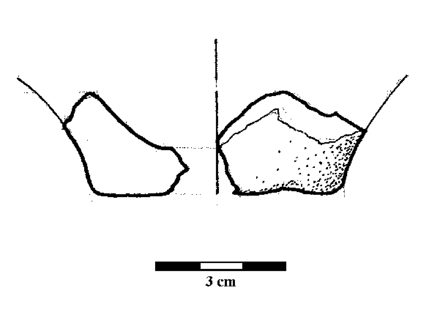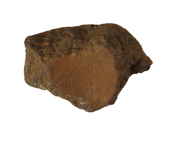 Donji dio posude ravnog dna koji prelazi u konusni trbuh. Keramika je smeđesive boje sa primjesama kalcita.