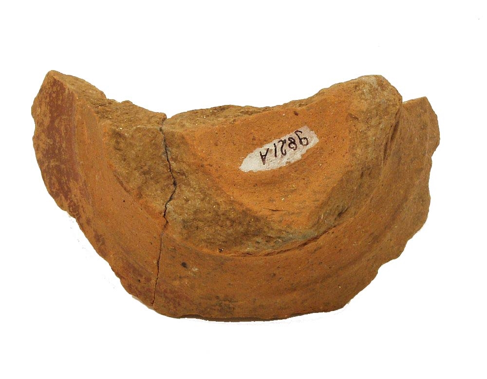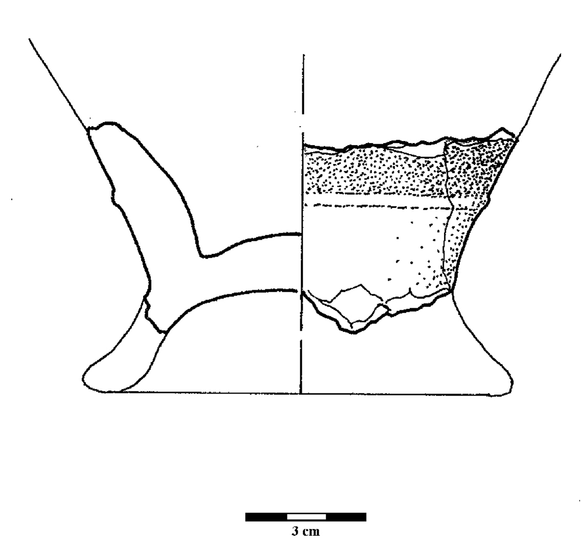 Dno keramičke situlaste posude na kojem se uočavaju tragovi ukrašavanja u obliku horizontalih crvenih traka izvedenih slikanjem. Ukrašena površina odvojena je tankim horizontalnim rebrom.