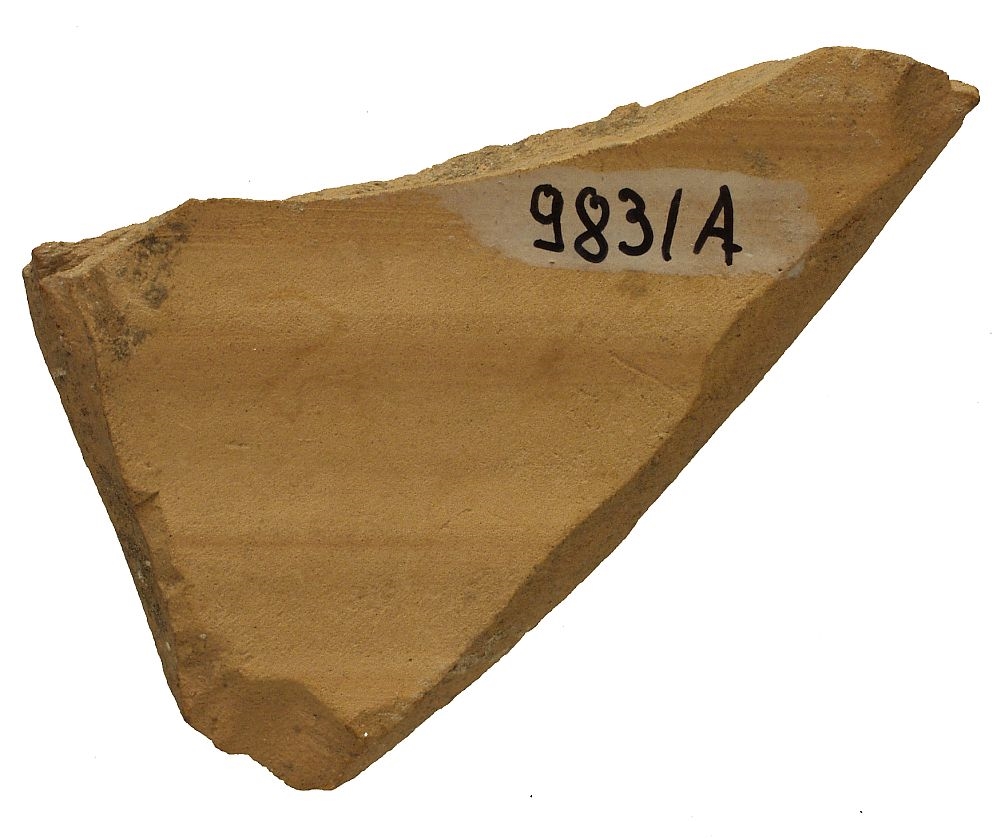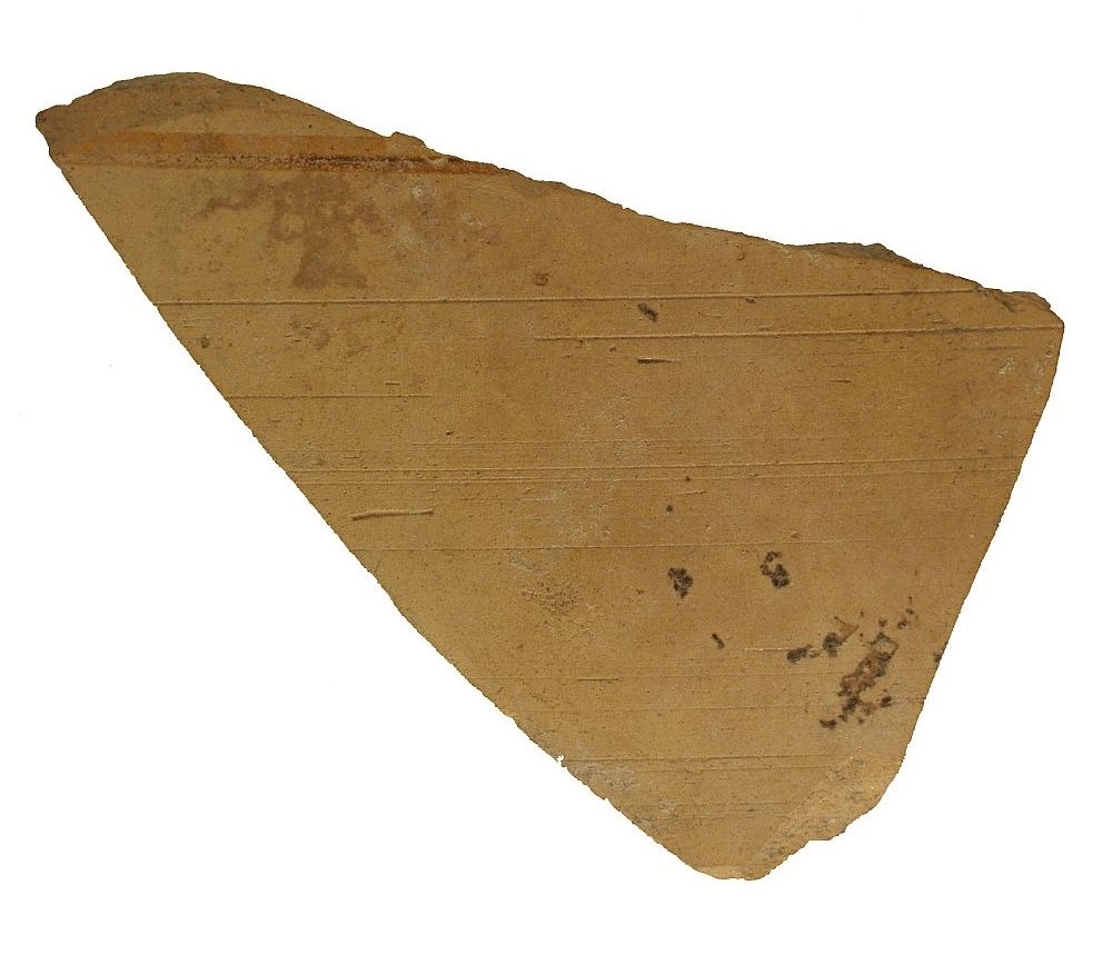 Ulomak ovalnog tijela vrča izrađenog na kolu. Svijetlosmeđa pročišćena keramika, ukrašena slikanom horizontalnom smeđom crtom.