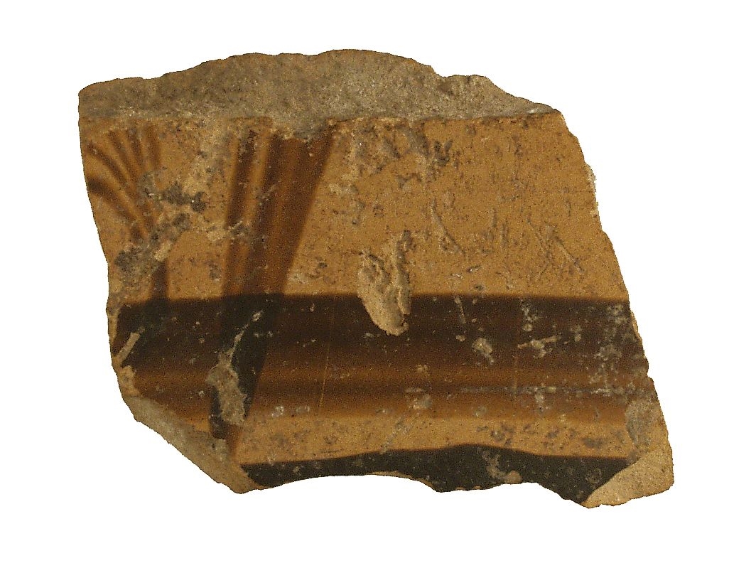 Ulomak tijela crvenofiguralne posud. Svijetlosmeđa pročišćena keramika, izvana tragovi slikanja smeđom bojom.