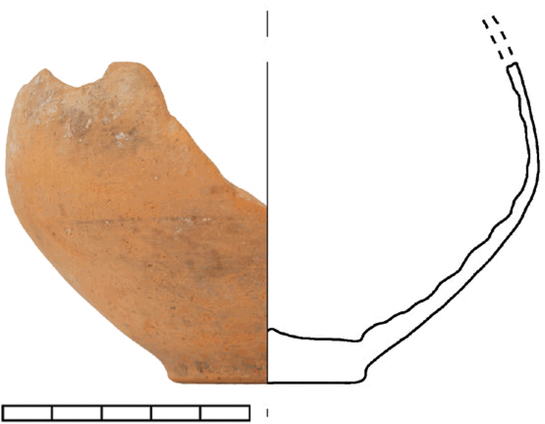 Ulomak dna kuglaste čaše. Keramika je crvene boje izrađena od fino pročišćene gline.
