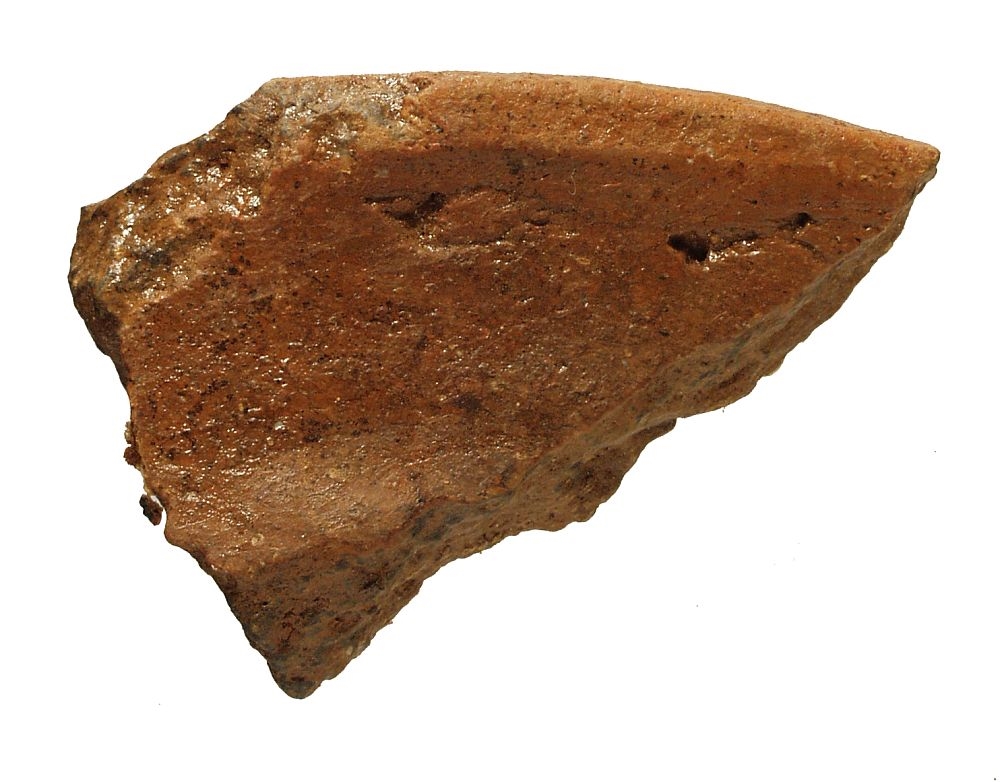 Ulomak prema vani izbačenog ušća posude. Keramika je crvenkastosmeđe boje.