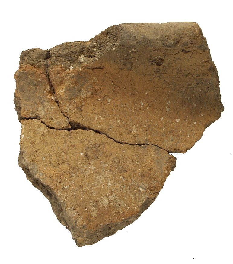 Ulomci gornjeg djela trbušaste posude suženog vrata i prema vani izbačenog ušća. Keramika je smeđesive boje sa primjesama kalcita.