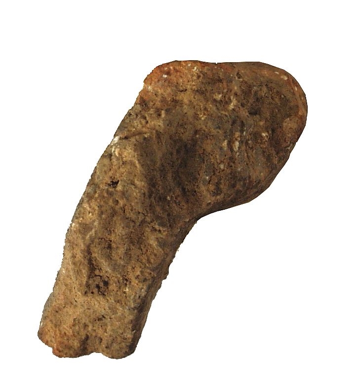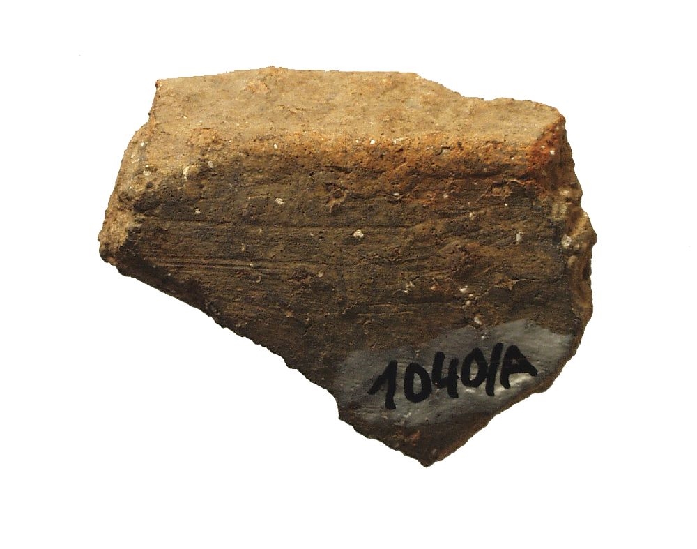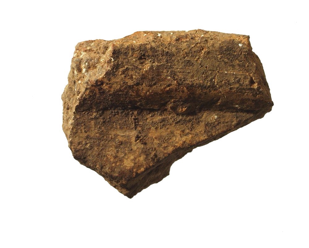 Ulomak horizontalno izbačenog ušća posude. Keramike je sivosmeđe boje sa dosta primjesa kalcita.