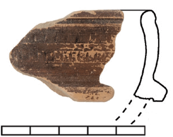 Ulomak oboda Ukrašen sa dva reda crtica. Ukras izveden kotačićem.