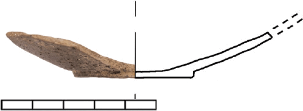 Ulomak tijela polukružne zdjele. Keramika je sive boje s lustrom od fino pročišćene gline.