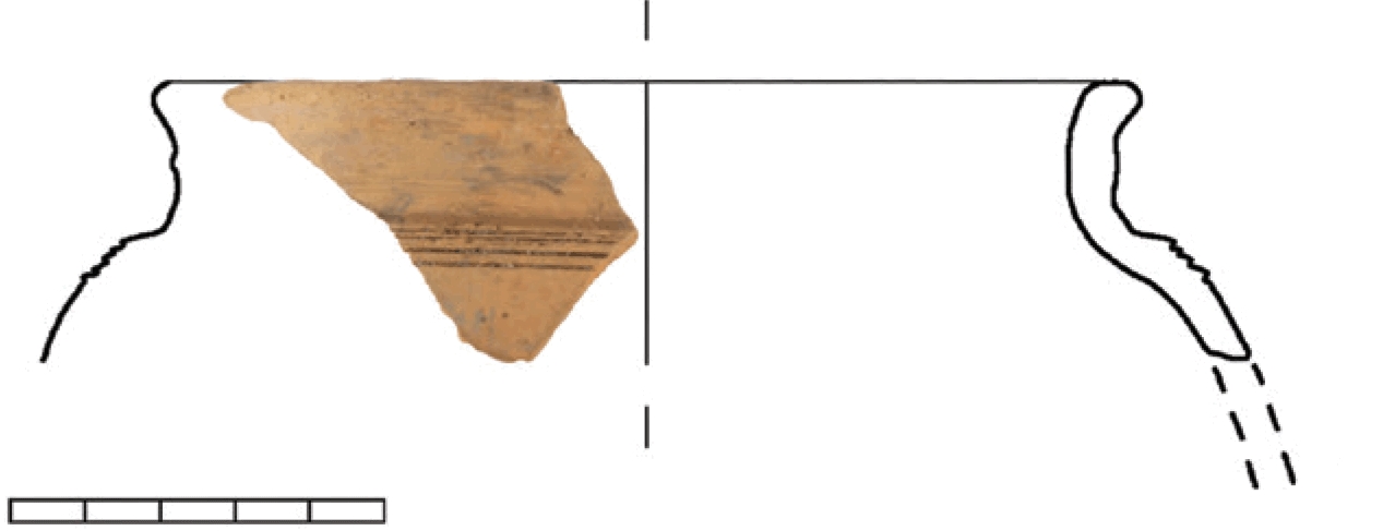 Fragment lonca. Narančasta fino pročišćena glina s primjesama manjih bijelih kamenčića.