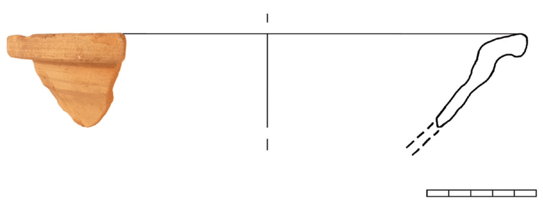 Fragmentirani tanjur. Svjetlo smeđe boje s malo primjesa bijelih kamenčića i kvarca. Obod je višestruko profiliran.