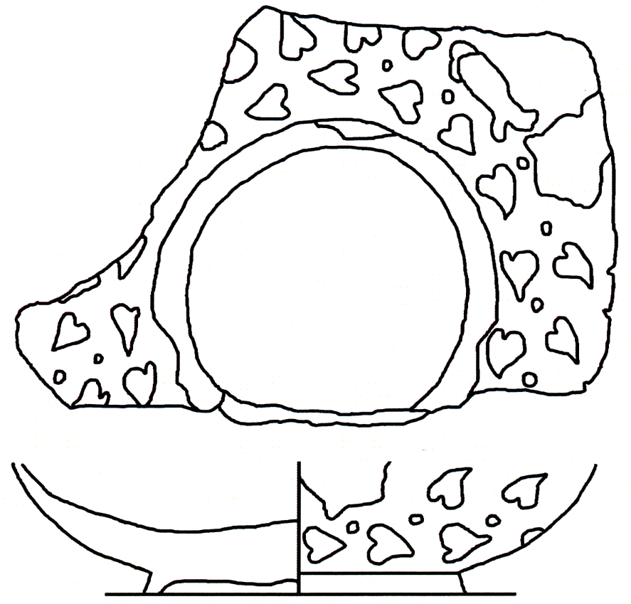 Ulomak dna Sarius šalice.Ukrašena je prikazom listova bršljanja sa točkama između njih.
