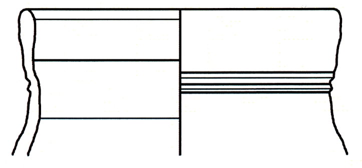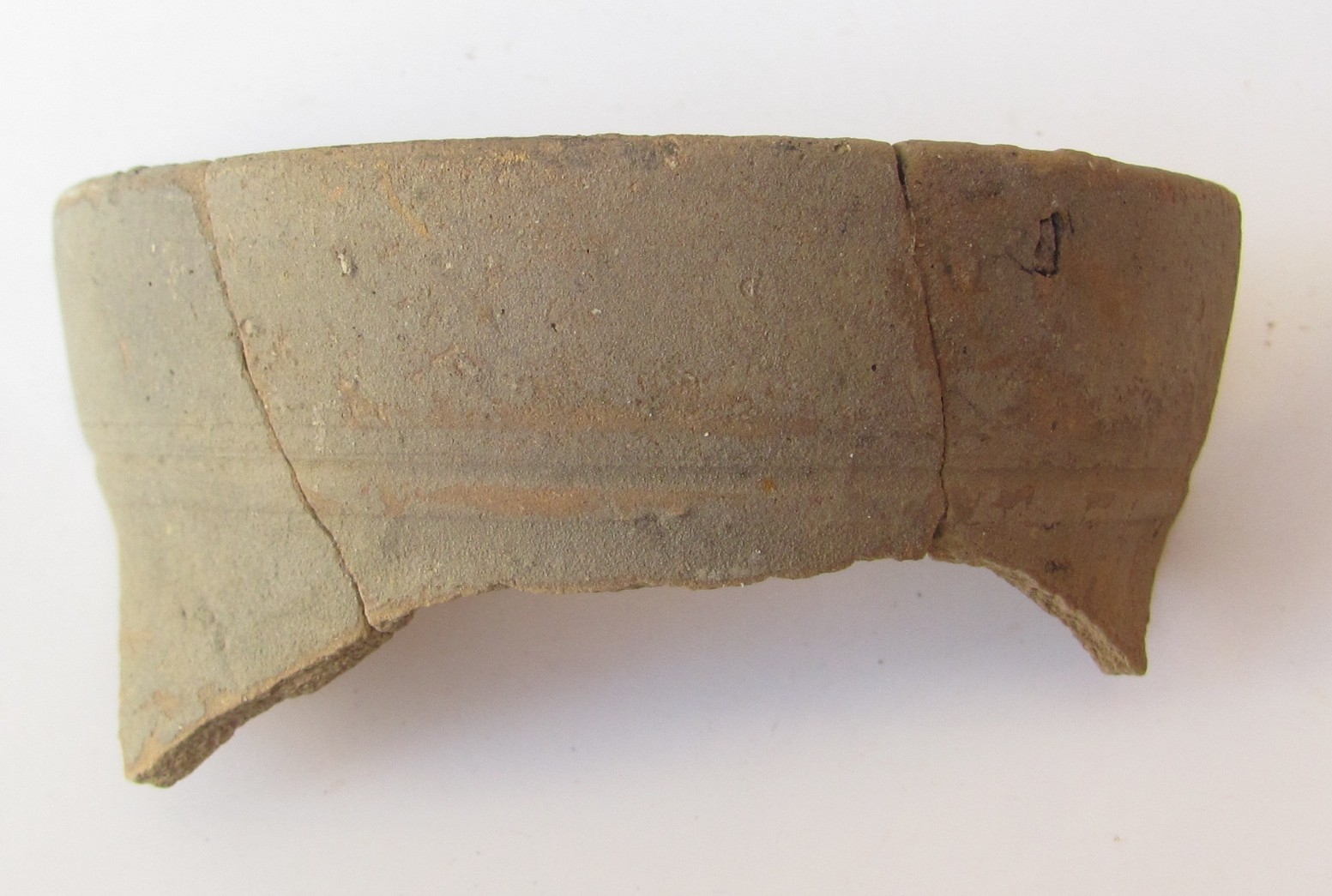 Ulomak ljevkastog oboda ukrašenog kružnim trakama. Keramika je svijetle boje od fino pročišćene gline.