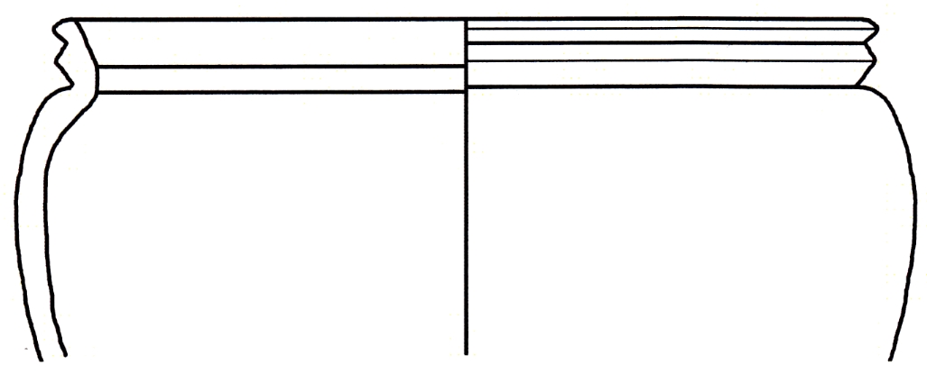 Ulomak ljevkastog oboda ovalne čaše ukrašenog sa dvije kružne trake oko vrata. Keramika je svjetla i izrađena od fino pročišćene gline.