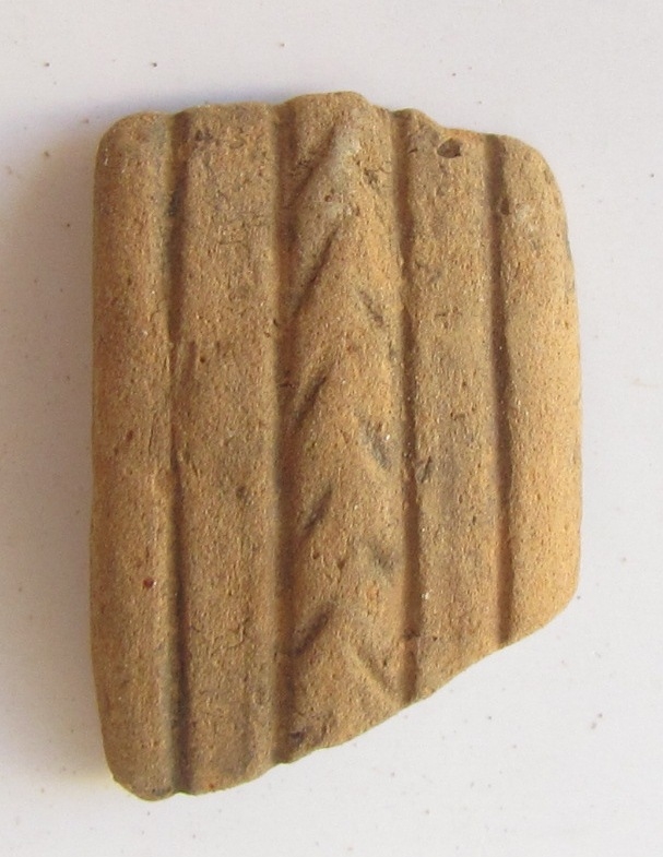 Ulomak ručke posude. Svijetla keramika od fino pročišćene gline.