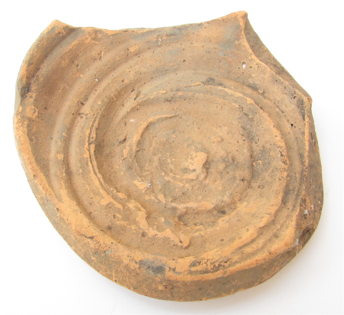 Ulomak dna posude na prstenastoj nozi unutar koje je kružno ravno dno. S unutrašnje su strane vidljivi nepravilni koncentrični krugovi. Glina je narančaste boje bez primjesa.