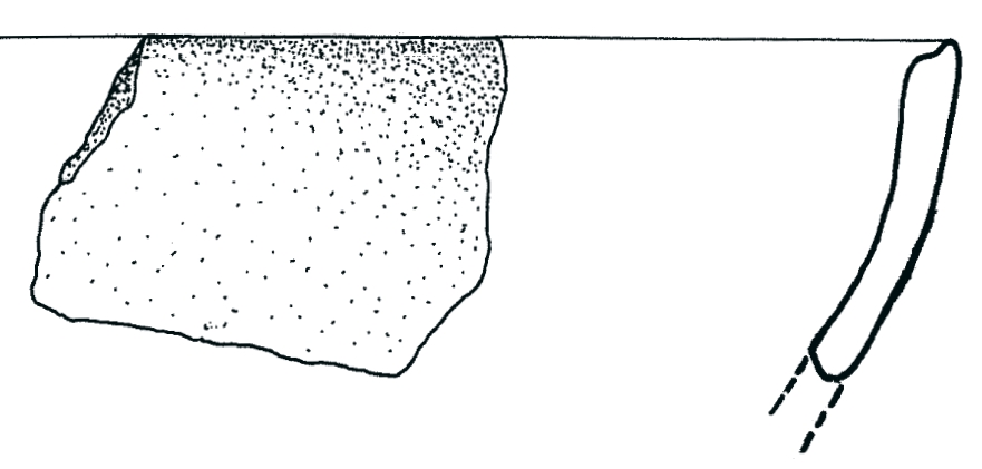 Ulomak gornjeg dijela poluloptaste zdjele s bifidnim obodom. Glina je ujednačene narančaste boje s dosta primjesa bijelih, crnih i sivih čestica pijeska i kalcita. S vanjske su strane vidljivi ostaci crvenog premaza.