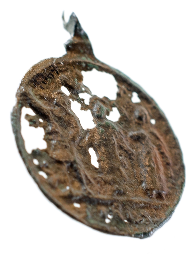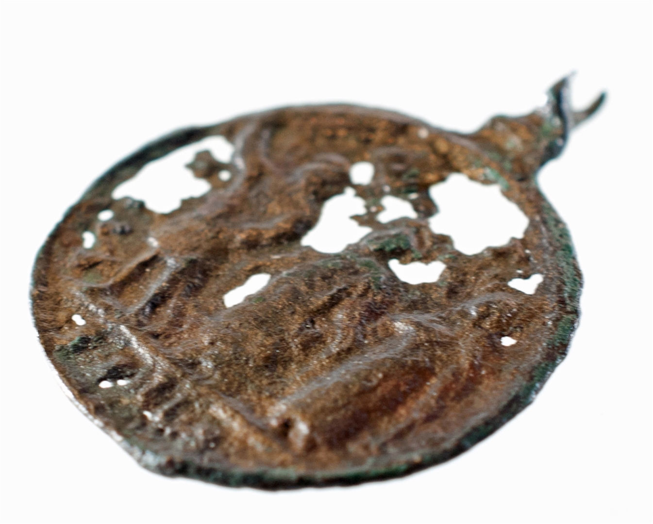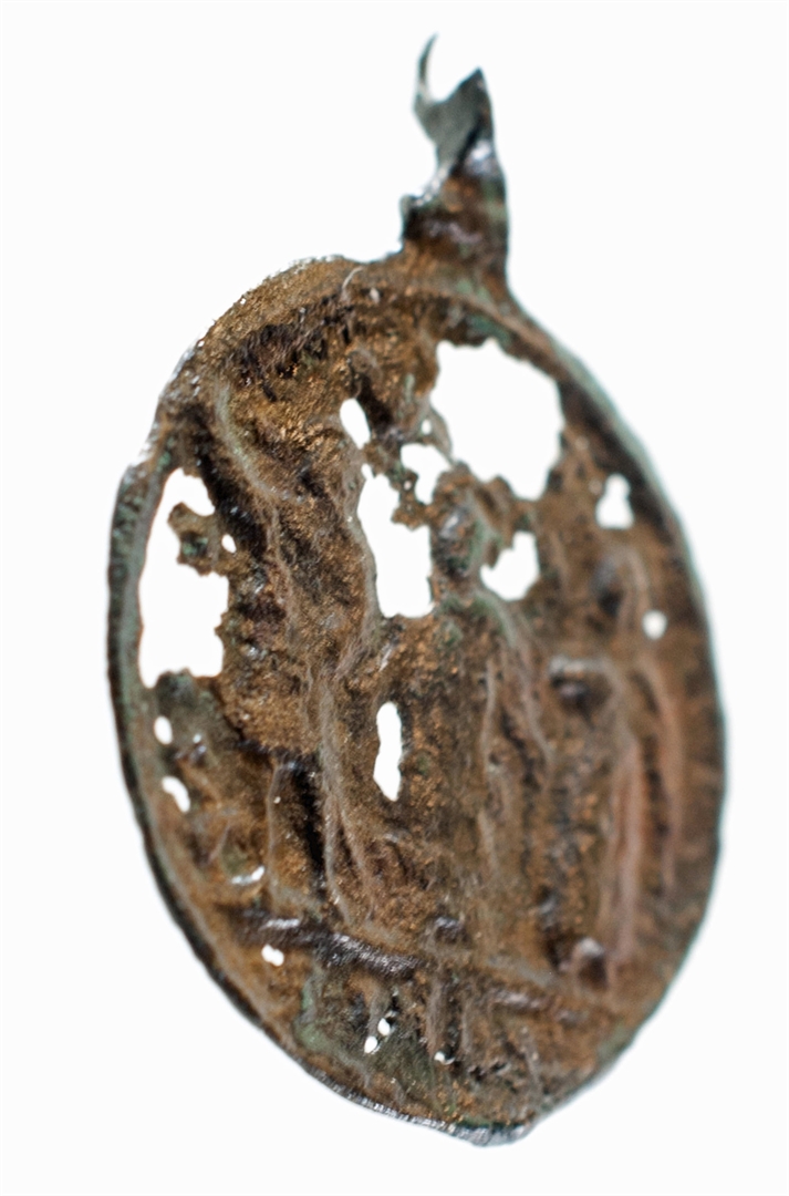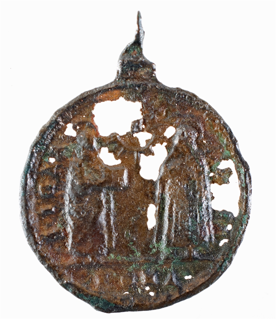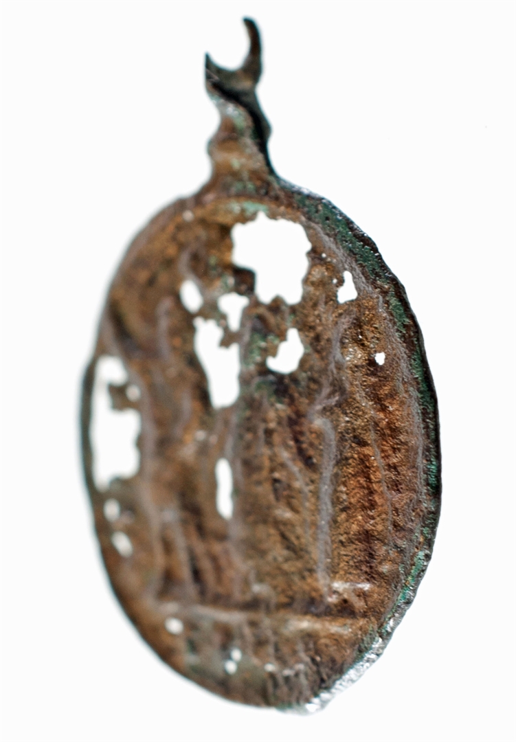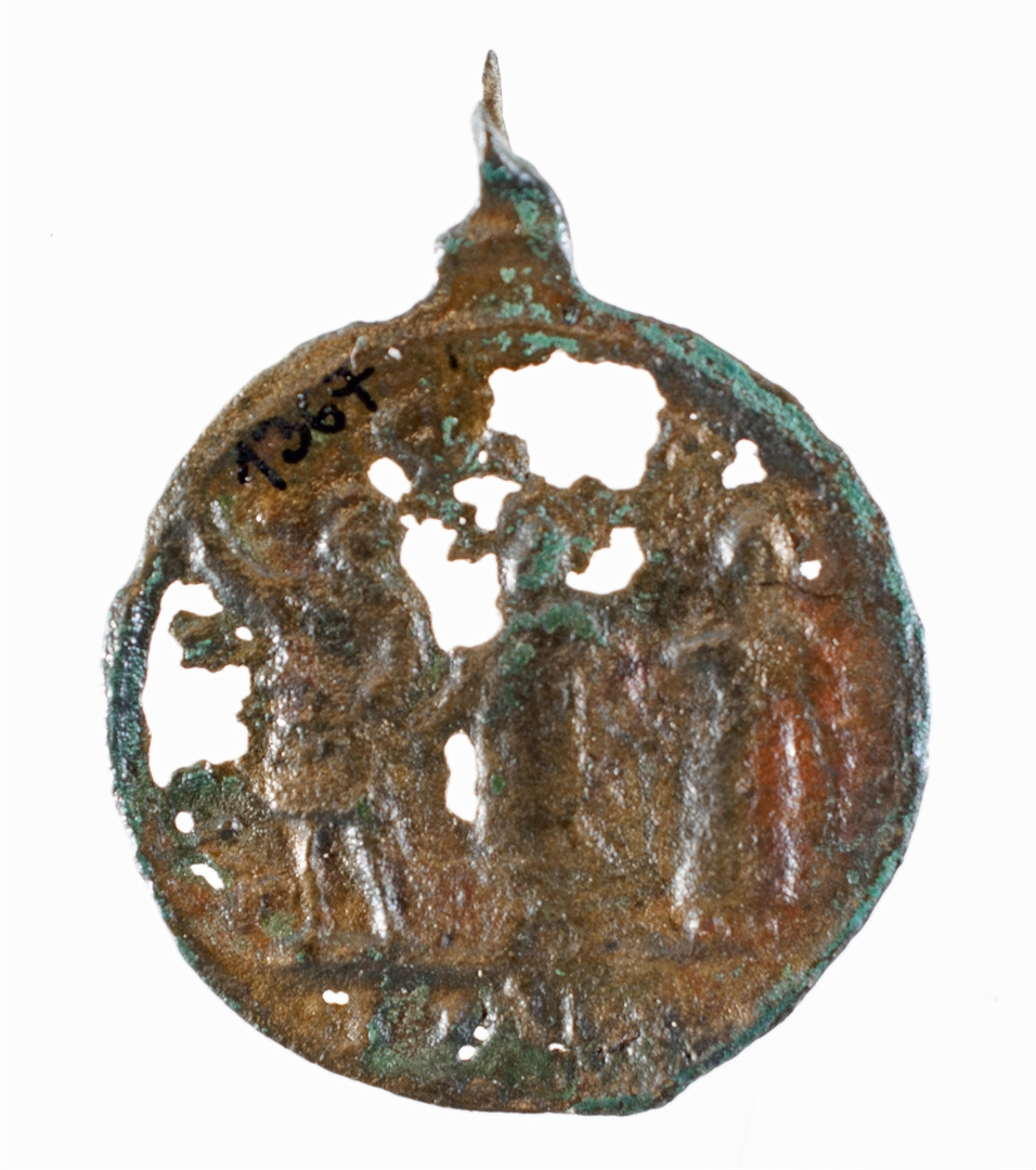 Svetačka medaljica s ušicom za privjes od tanke lijevane bronce.