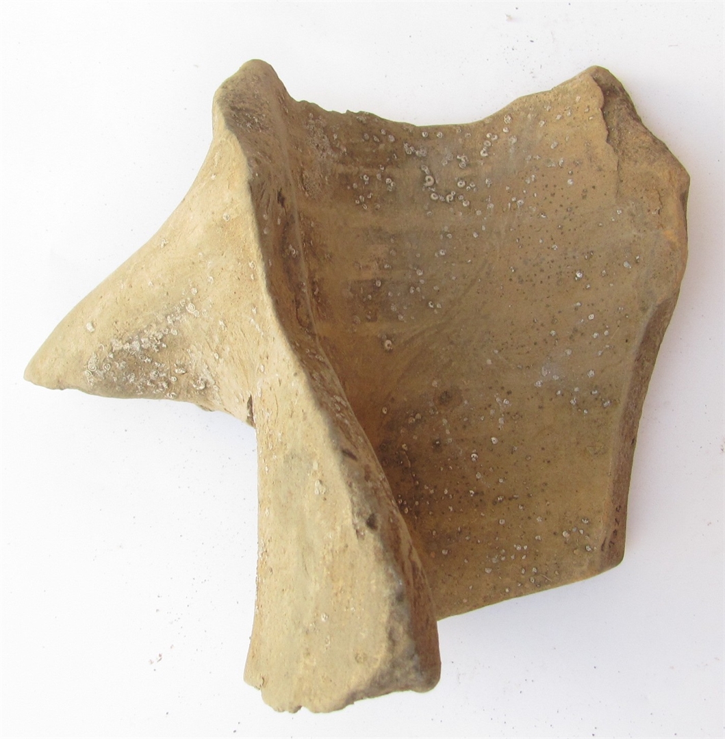 Ulomak grla i ručke amfore svijetložute dobro pečene gline.