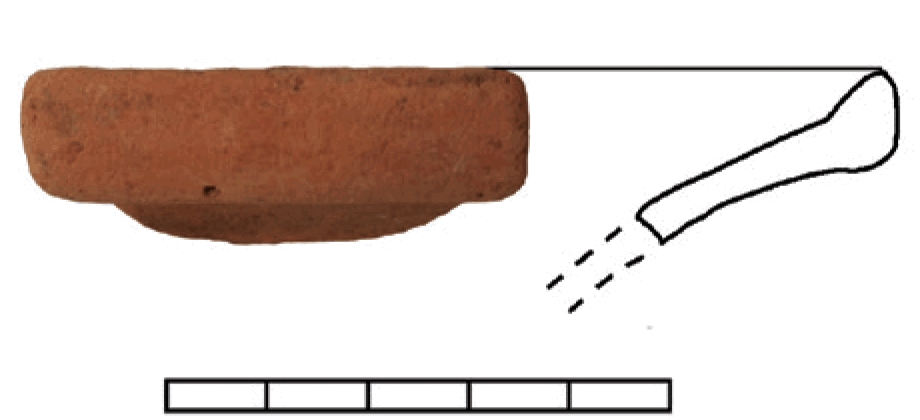 Ulomak oboda i tijela tanjura sa zadebljanjem na vanjskoj strani. Keramika je narančaste boje bez primjesa s finim premazom u istoj nijansi.