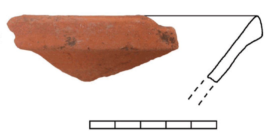 Ulomak oboda i tijela zdjele sa zadebljanjem na vanjskoj strani. Keramika je narančaste boje bez primjesa s finim premazom u istoj nijansi.