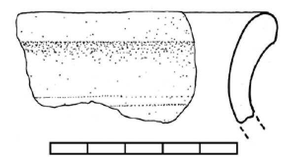 Ulomak oboda lonca s primjesama kamenčića, izvana crvene, a iznutra i u prijelomu crne boje.