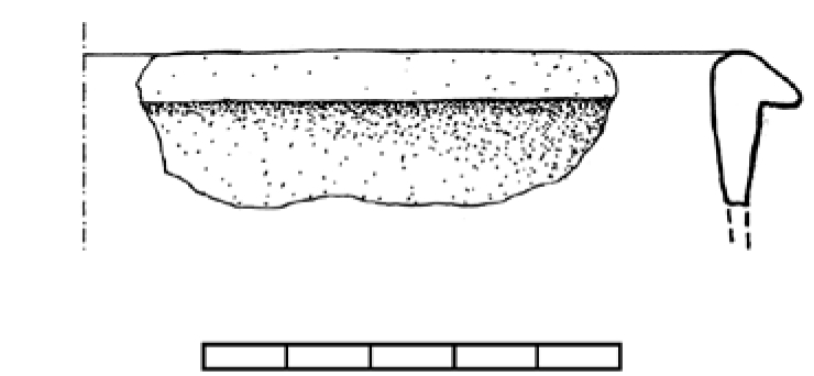 Ulomak lonca s primjesama sitnog pijeska, iznutra i u prijelomu narančaste, a izvana crne boje.