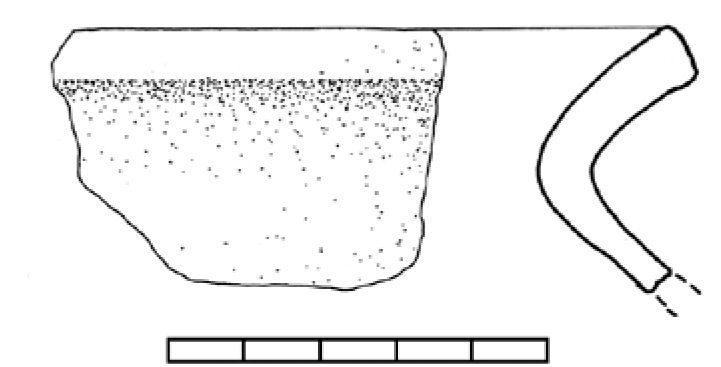 Ulomak oboda lonca s tragovima zagorijevanja, izvana i u prijelomu svijetlo, a iznutra tamno smeđe boje.