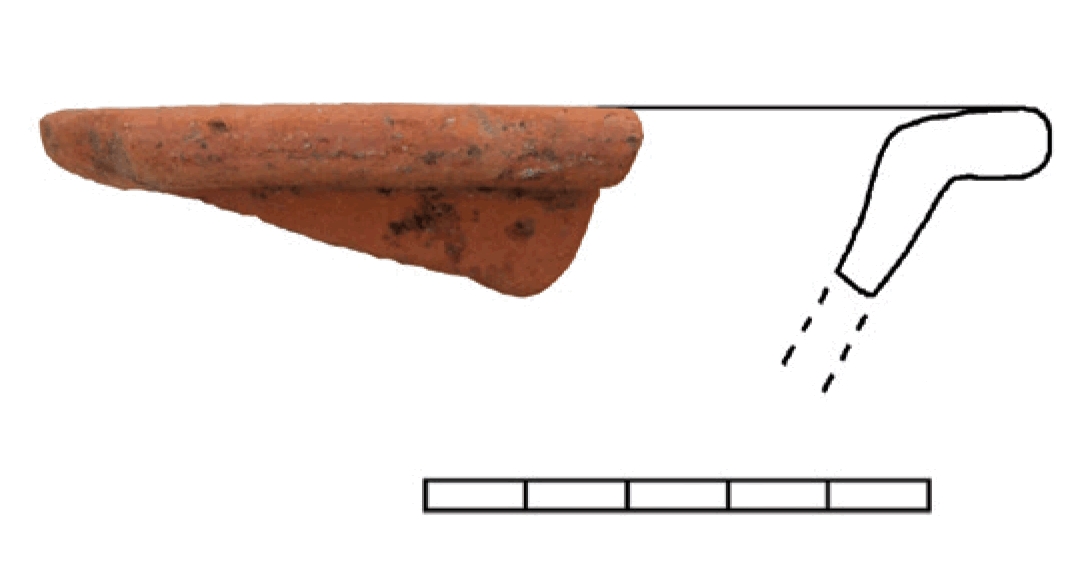 Ulomak oboda i tijela tanjura. Keramika je narančaste boje bez primjesa s finim premazom u istoj nijansi.