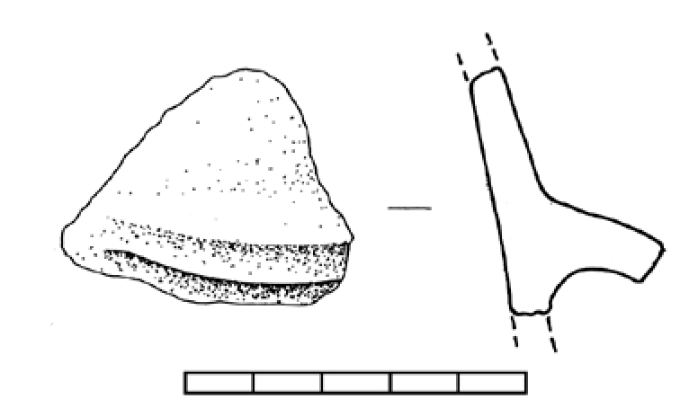 Ulomak ručke posude s primjesama kalcita, crvene boje.