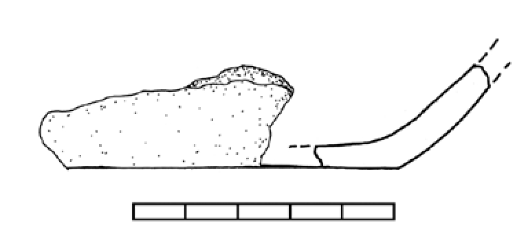 Dno posude s primjesama vapnenca, izvana crno a iznutra i u prijelomu crvene boje.